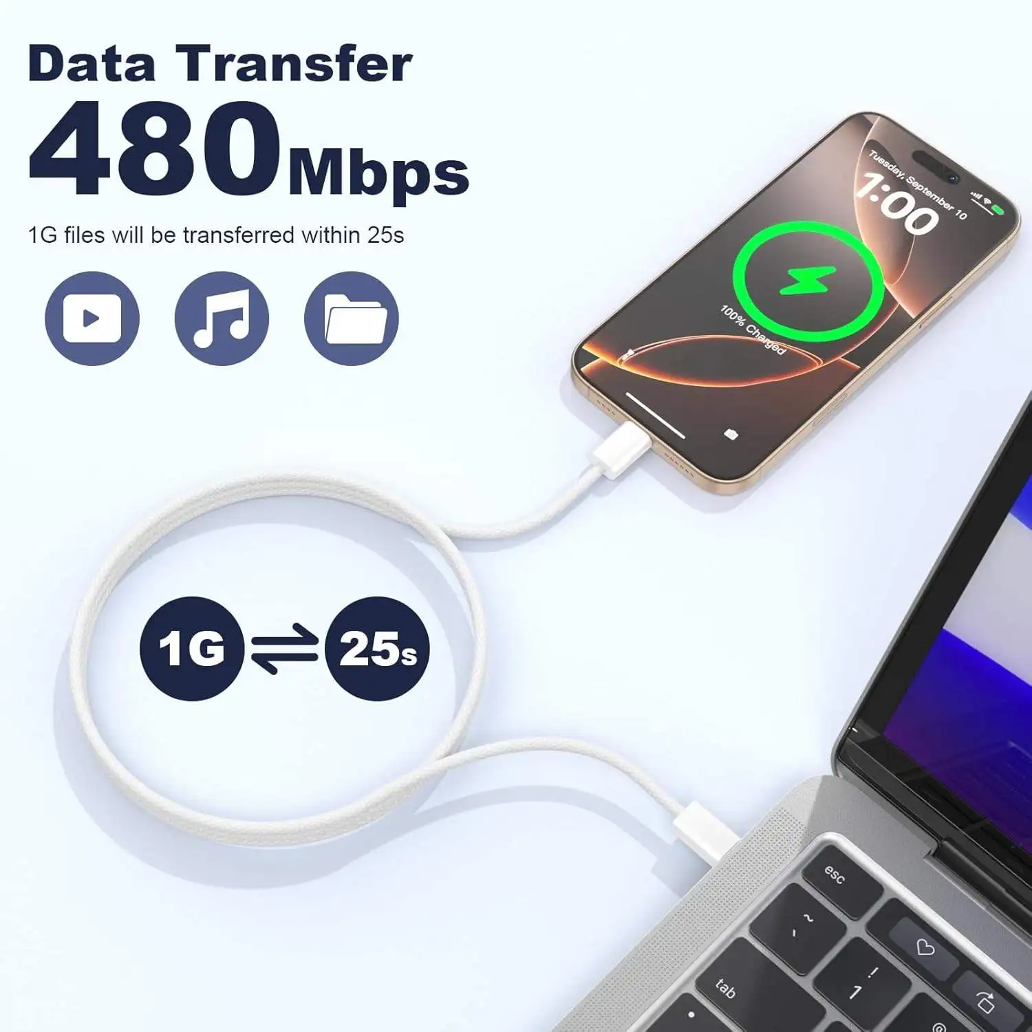 Tonetron MFI Certified Data Cable Custom Length for 15-/ Max Mobile Flash Charger